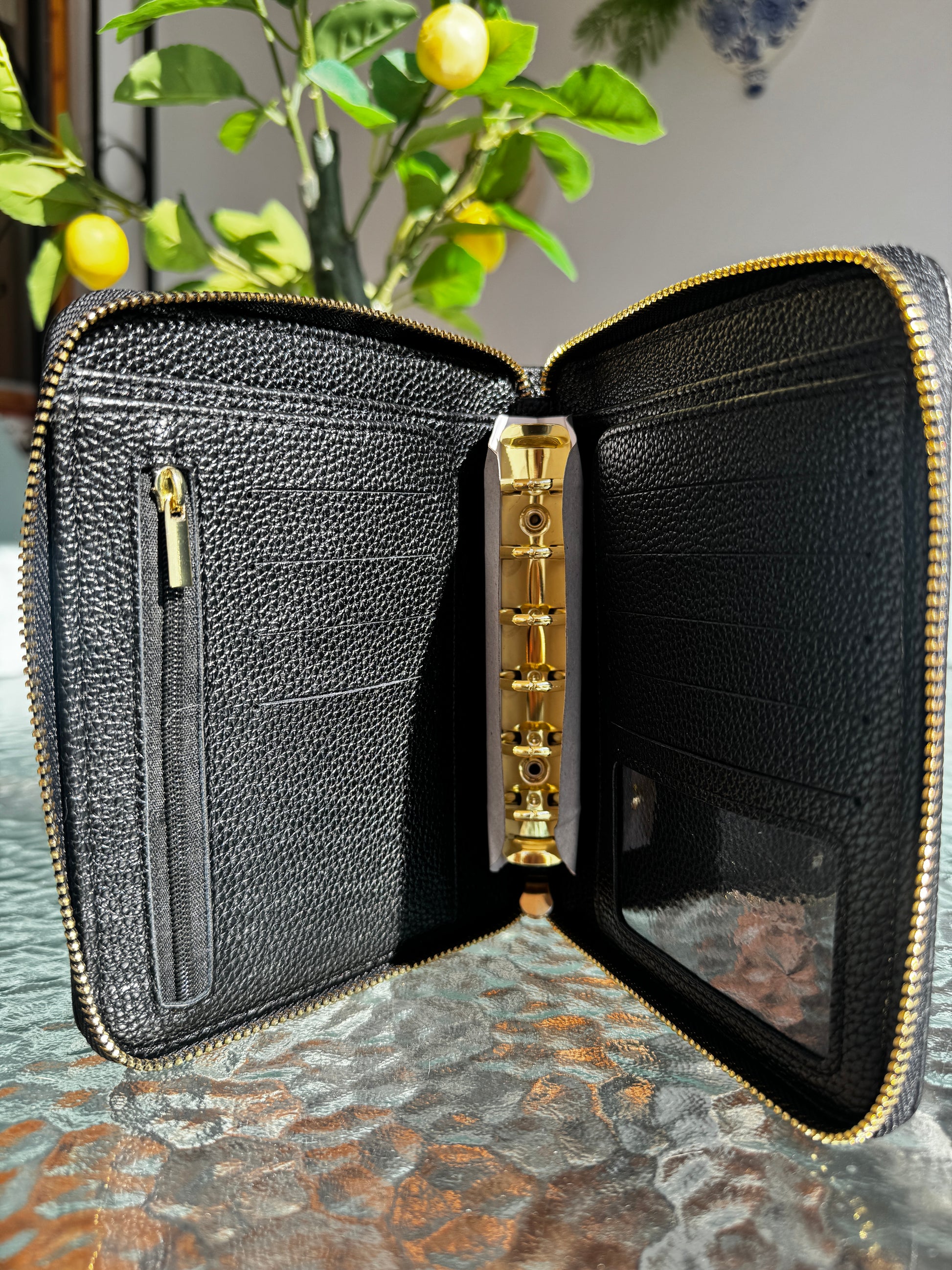 La cartera Arena es tu compañera perfecta para organizar el Método de los sobres de manera cómoda, práctica y bonita. Su diseño compacto A7, combinado con anillas metálicas y cremallera completa, mantiene tus sobres y tarjetas siempre seguros y bien ordenados.